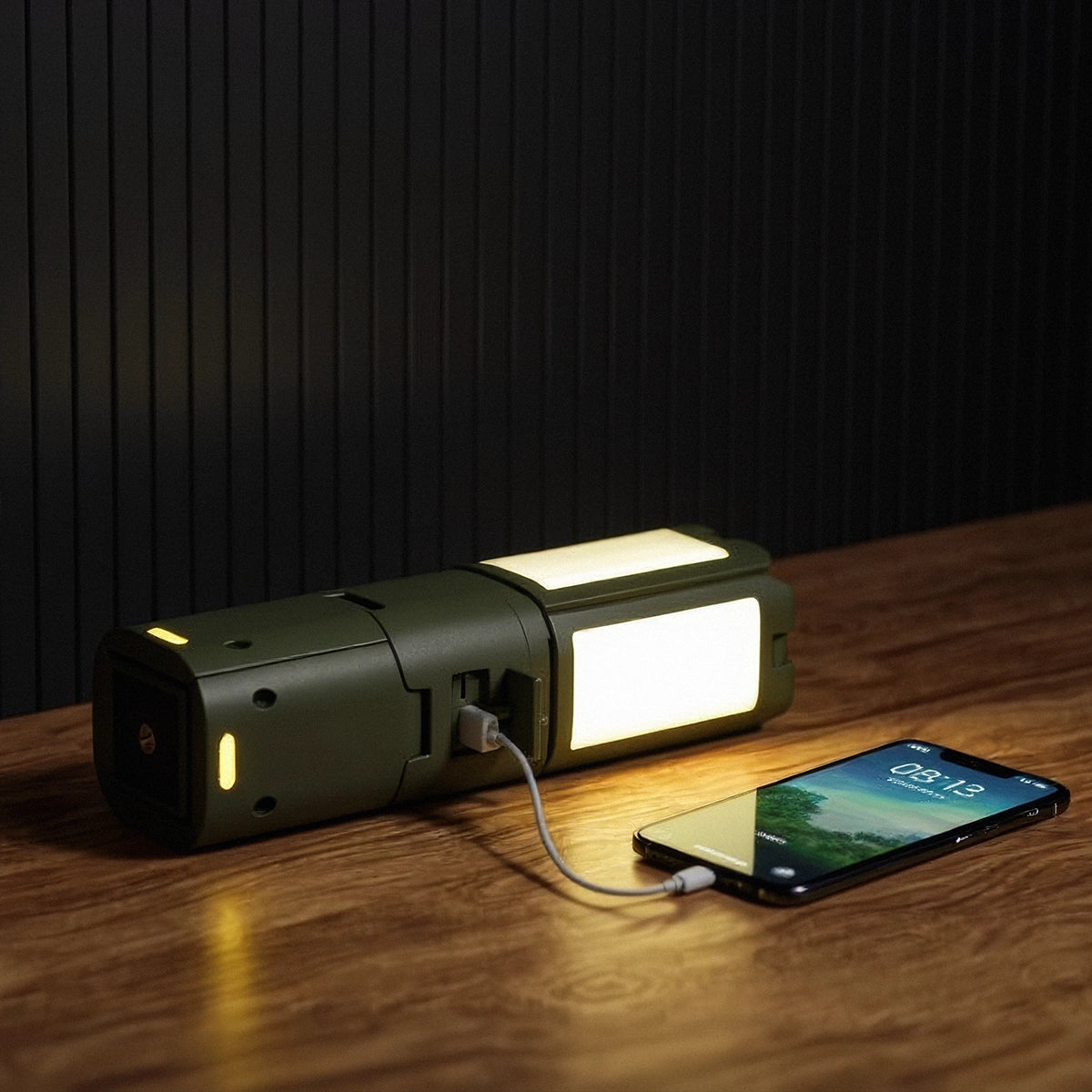 A materiali: strong >ABS, PC, lega di alluminio p >< p >< strong >Extra: strong >Funziona anche come power bank, pannelli inclinabili per luce multidirezionale p >