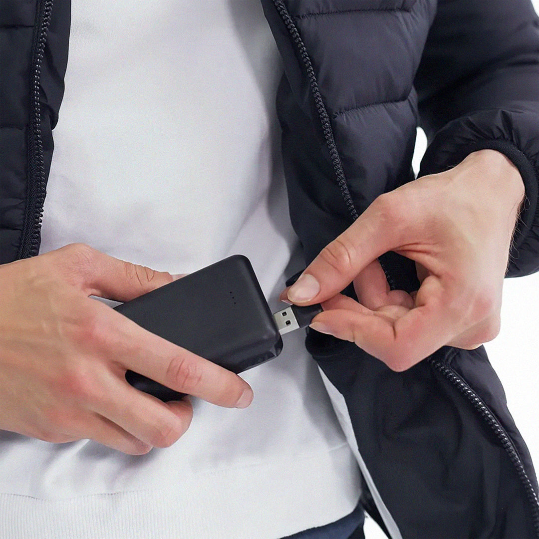Connect a standard 10,000mAh power bank and enjoy impressive heat that lasts all day.