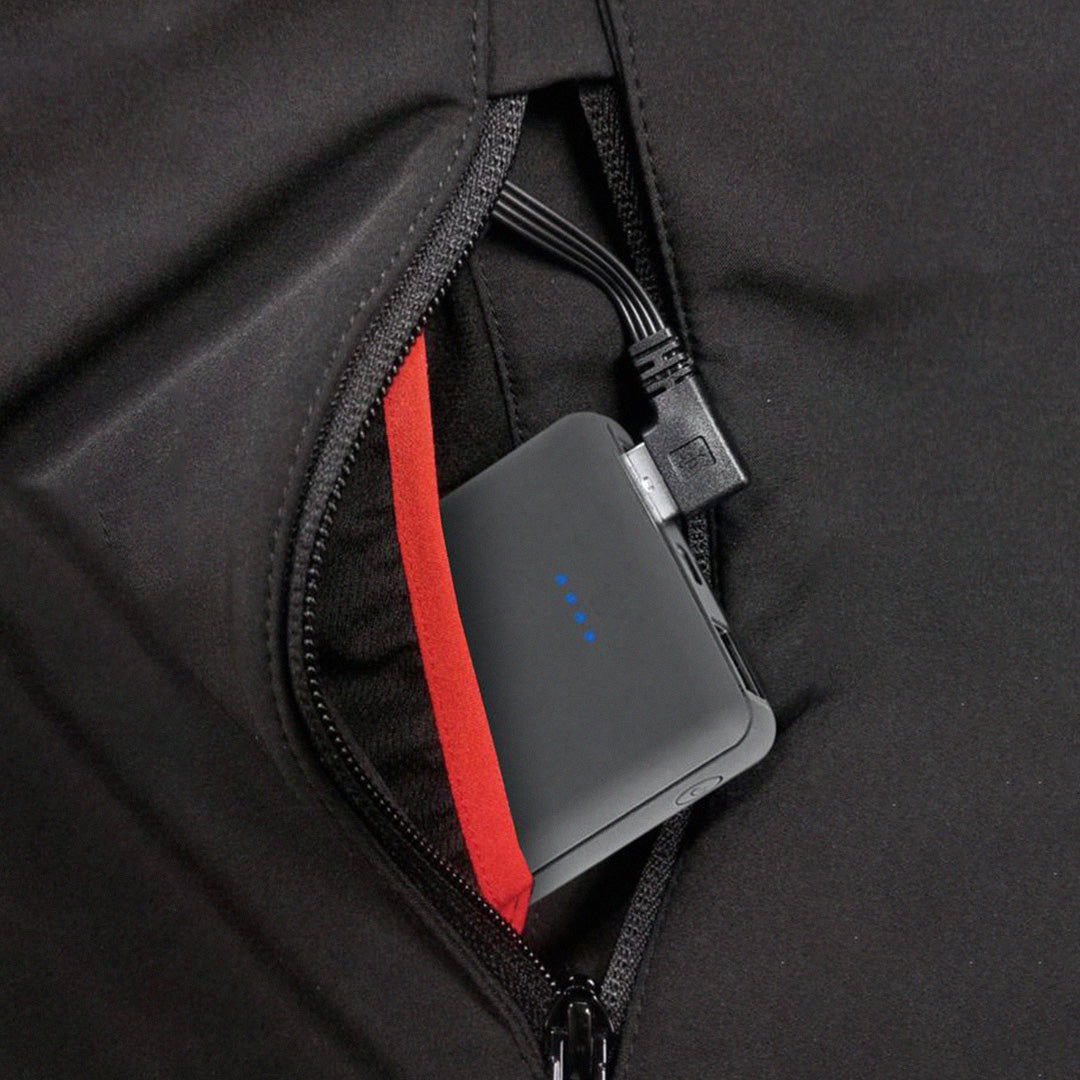 The jacket works with any power bank with USB connection, so you can use what you already have at home.