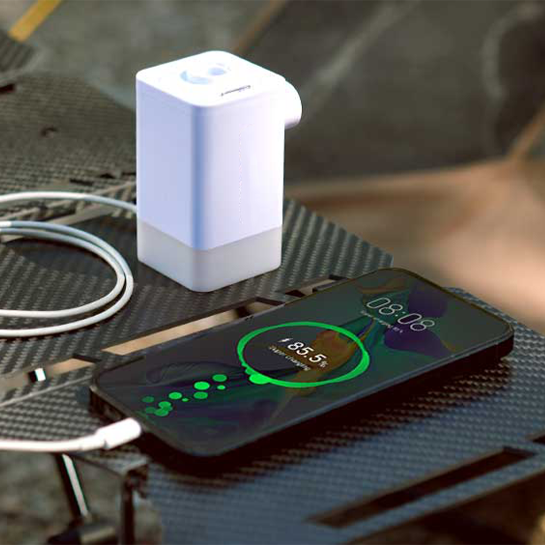 E non lasciarti ingannare dalle sue dimensioni—questa pompa ha una potenza notevole. Inoltre, con la sua batteria ricaricabile USB-C, è tanto intelligente quanto forte, pronta a tenere il passo con te viaggio dopo viaggio, stagione dopo stagione.