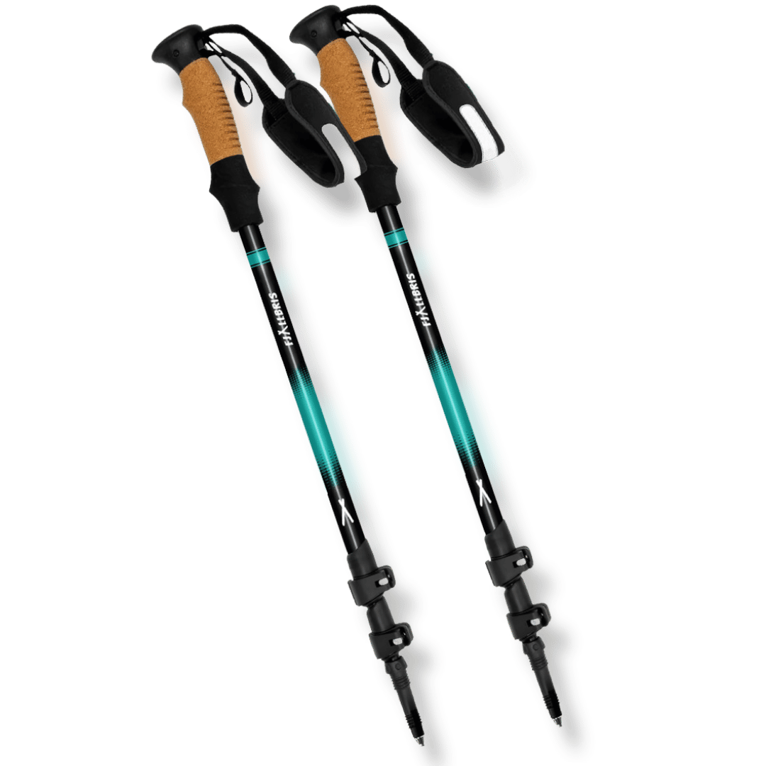 Each set includes two adjustable poles, three interchangeable tip attachments (for pavement, trails, and icy surfaces), and a compact carry bag. They fold down small enough to fit in most backpacks or car compartments.